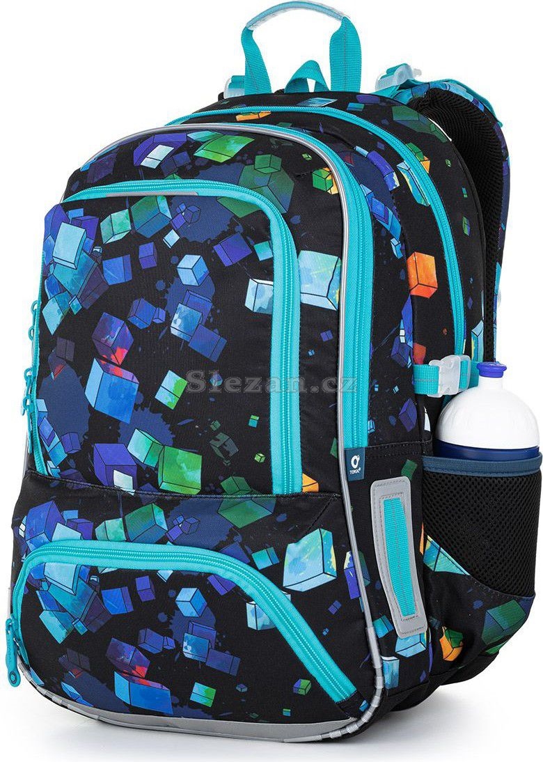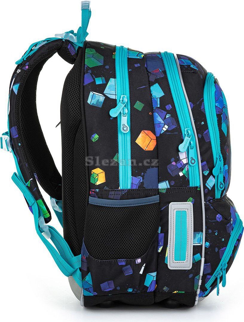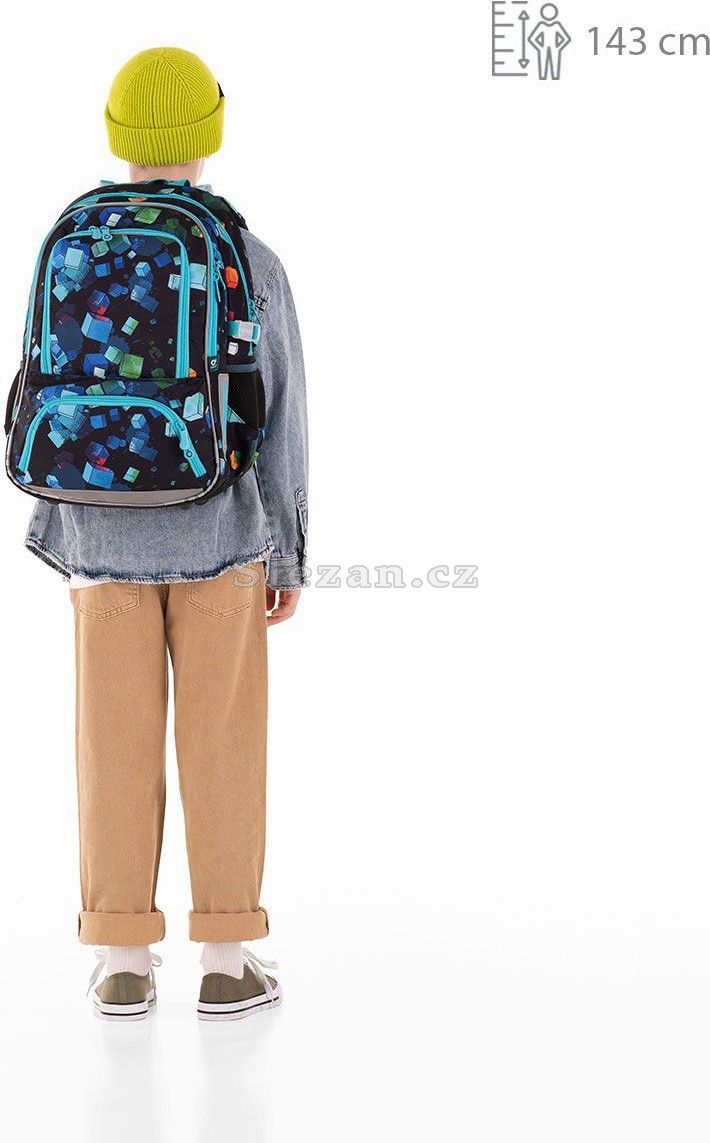 Batoh má dvě hlavní komory. To nejtěžší učení, učebnice, atlasy, nebo desky na sešity, dejte do zadní, širší komory. V přední komoře pak najde místo všechno ostatní učivo. Navíc je zde menší praktická síťová kapsička na zip a jmenovka.