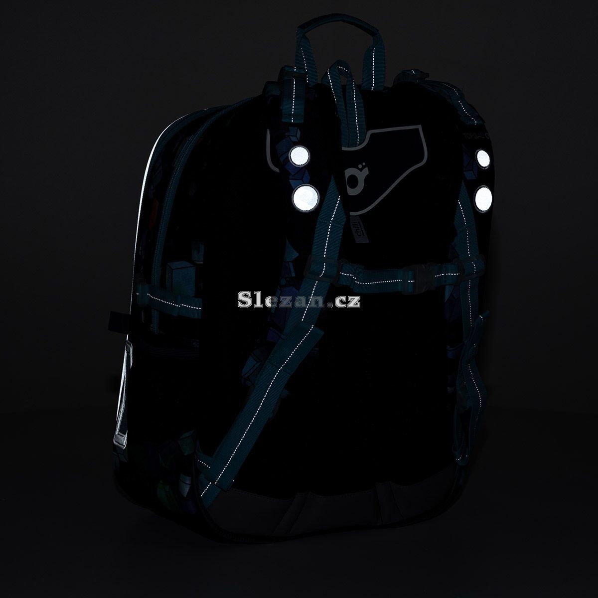 Ani na tomto batohu jsme nešetřili reflexními plochami. Najdete je na čele, bocích i ramenních popruzích batohu.