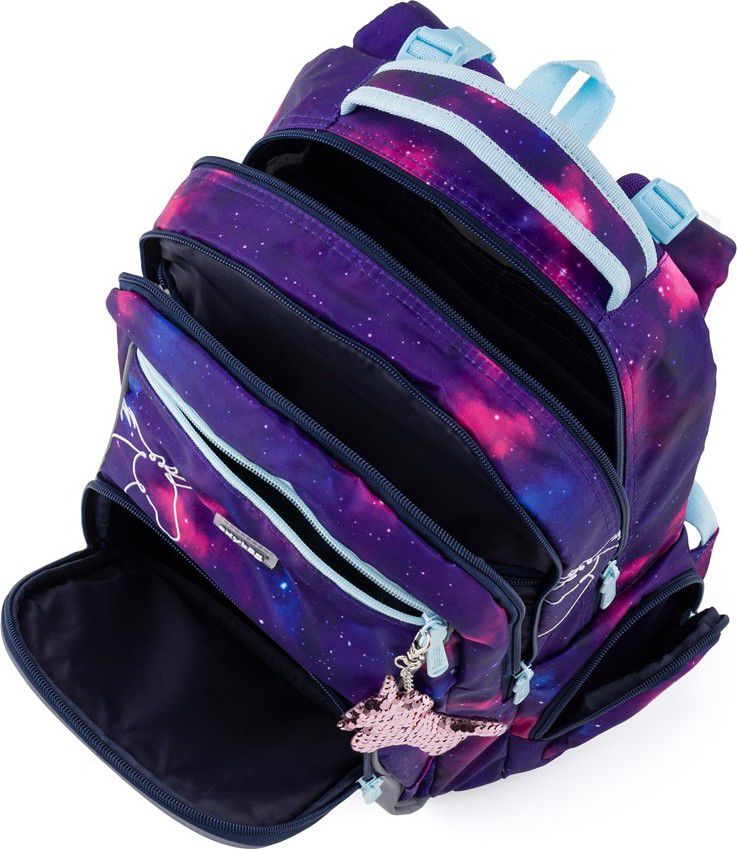 Dvě vnitřní kapsy nabízí dostatek prostoru pro učebnice, sešity i věci na volný čas.