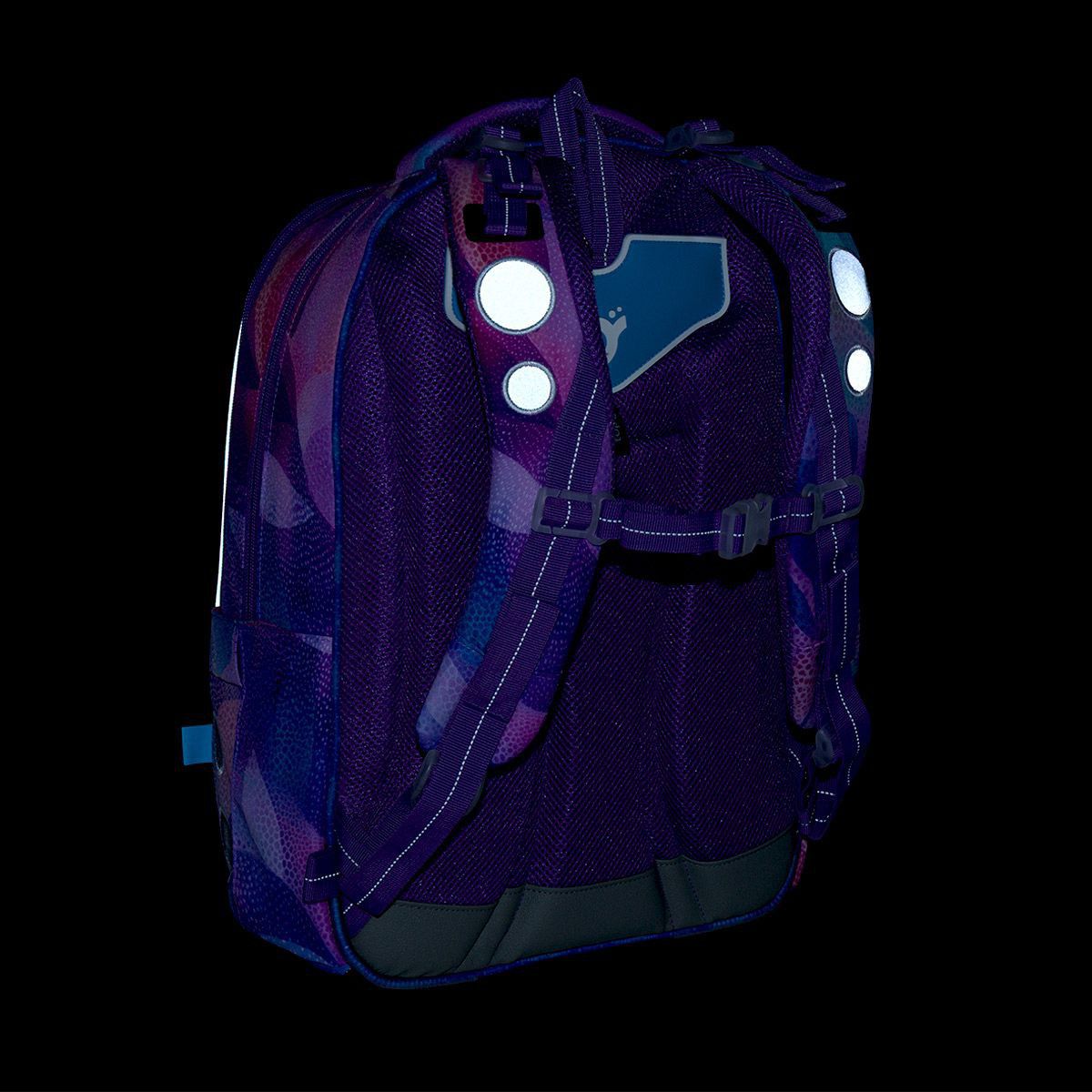 Do bočních kapes se pohodlně vejde lahev ZIVA o objemu 0,5 litru. Batoh je doplněný o reflexní prvky na čele, bocích i ramenních popruzích pro lepší viditelnost dítěte na cestě do školy.