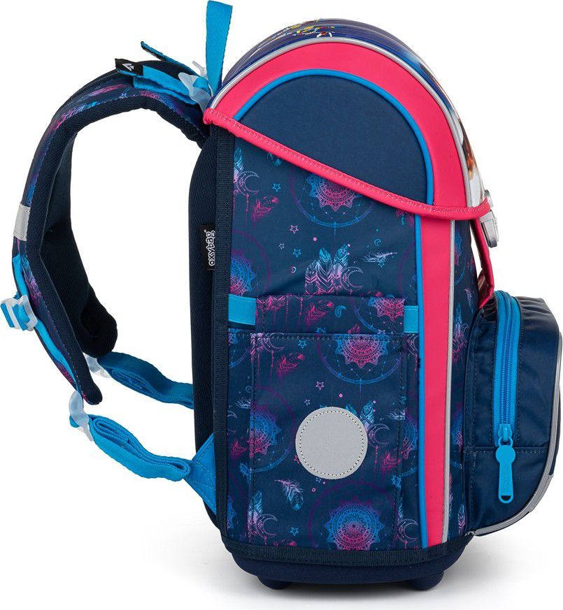 Přední kapsička je určena na svačinu, nechybí řada reflexních prvků, díky kterým je aktovka viditelnější.