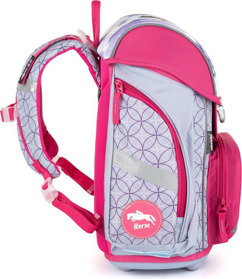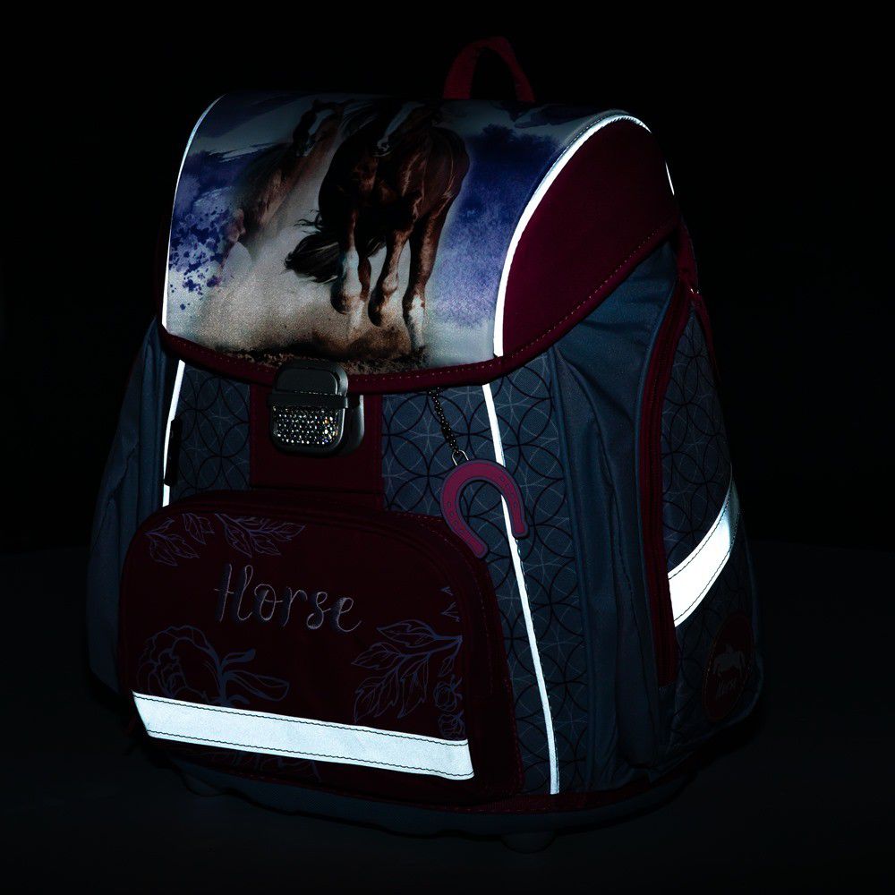Školní aktovka z řady Premium s motivem koně je anatomicky tvarovaná a zajišťuje tak správné usazení na zádech.