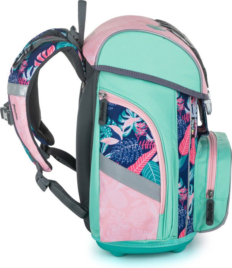 Školní aktovka z řady Premium s motivem lenochoda je anatomicky tvarovaná a zajišťuje tak správné usazení na zádech. Vyztužená záda a vnitřní výztuha udržují stálý tvar batohu. Polstrování je z příjemného prodyšného materiálu, široké měkčené popruhy jsou navrženy tak, aby dokonale přilnuly a rovnoměrně zatížily ramena dítěte. Aktovka se skládá z jedné prostorné komory, kam se pohodlně vejdou všechny školní pomůcky pro děti v 1. a ve 2. třídě. Dno batohu je z pevného materiálu, chrání tím obsah před převržením a vysypáním. Zapínání je na bezpečnostní přezku. Přední kapsička je určena na svačinu, nechybí řada reflexních prvků, díky kterým je aktovka viditelnější.
