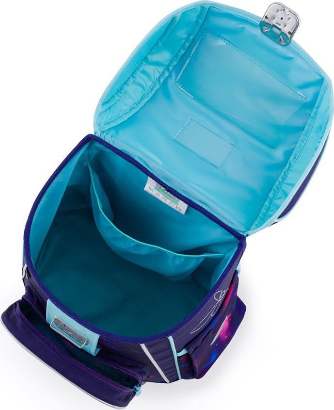Aktovka se skládá z jedné prostorné komory, kam se pohodlně vejdou všechny školní pomůcky pro děti v 1. a ve 2. třídě.