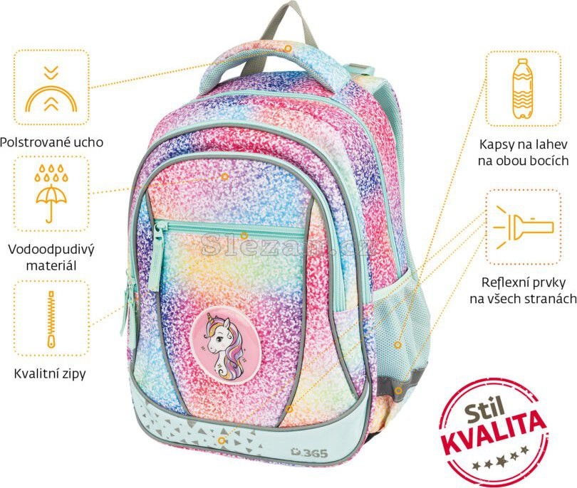 Kvalitní, velmi lehký, ergonomicky tvarovaný a odlehčený školní batoh je vybaven reflexními prvky a anatomicky tvarovanými zády s pevnou konstrukcí.