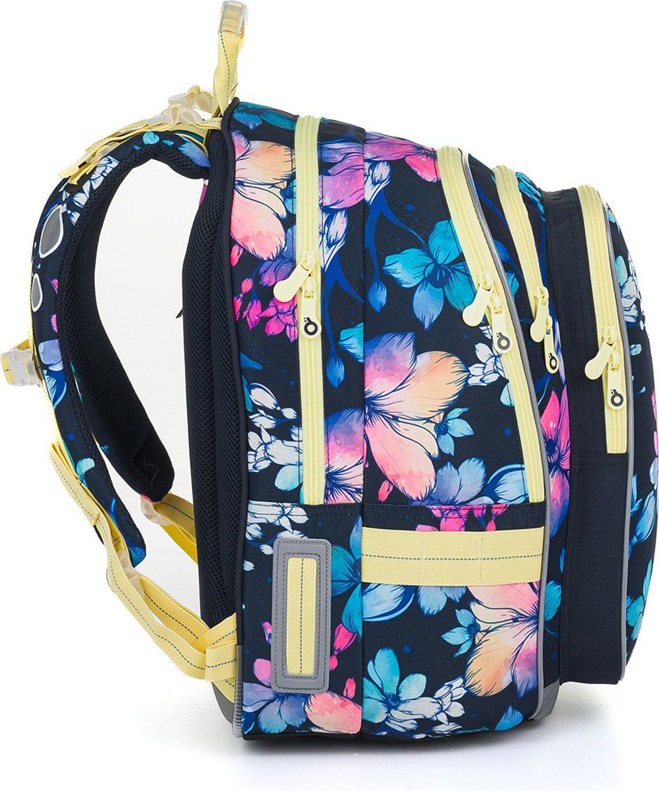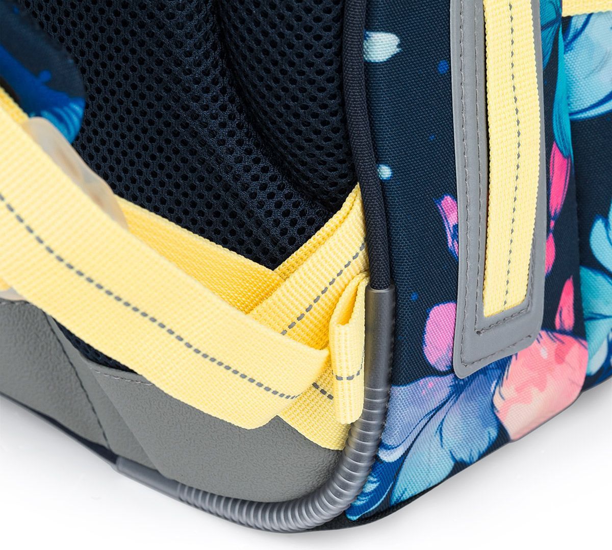 Dvoukomorový model LYNN patří k nejobjemnějším střihům v naší nabídce. Žluté zipy ladí s květy duhových barev.