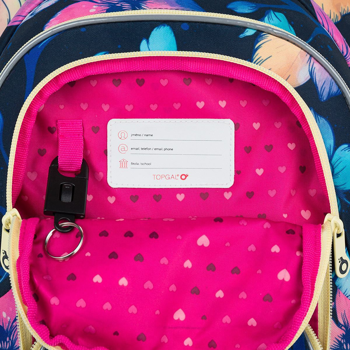 Zadní komora batohu je užší. Je ideální na přenášení nejtěžších učebnic nebo desek na sešity. Přední komora je nejširší a najdete v ní praktickou síťovou kapsičku na zip. Hluboká kapsa mezi přední komorou a kapsou na čele batohu má užší vstup, skvěle se hodí pro penál PENN 24008 ve stejném designu.