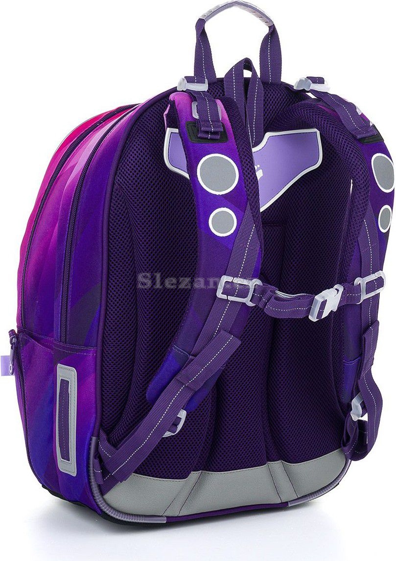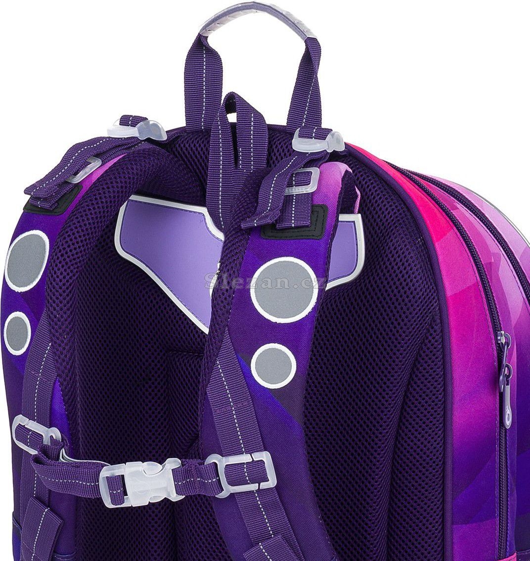 Batoh má dvě hlavní objemné komory. Zadní komora batohu je užší než přední, radíme do ní dát nejtěžší učivo a směrem dopředu odlehčovat. V přední komoře je umístěna síťová kapsa na zip a jmenovka.
