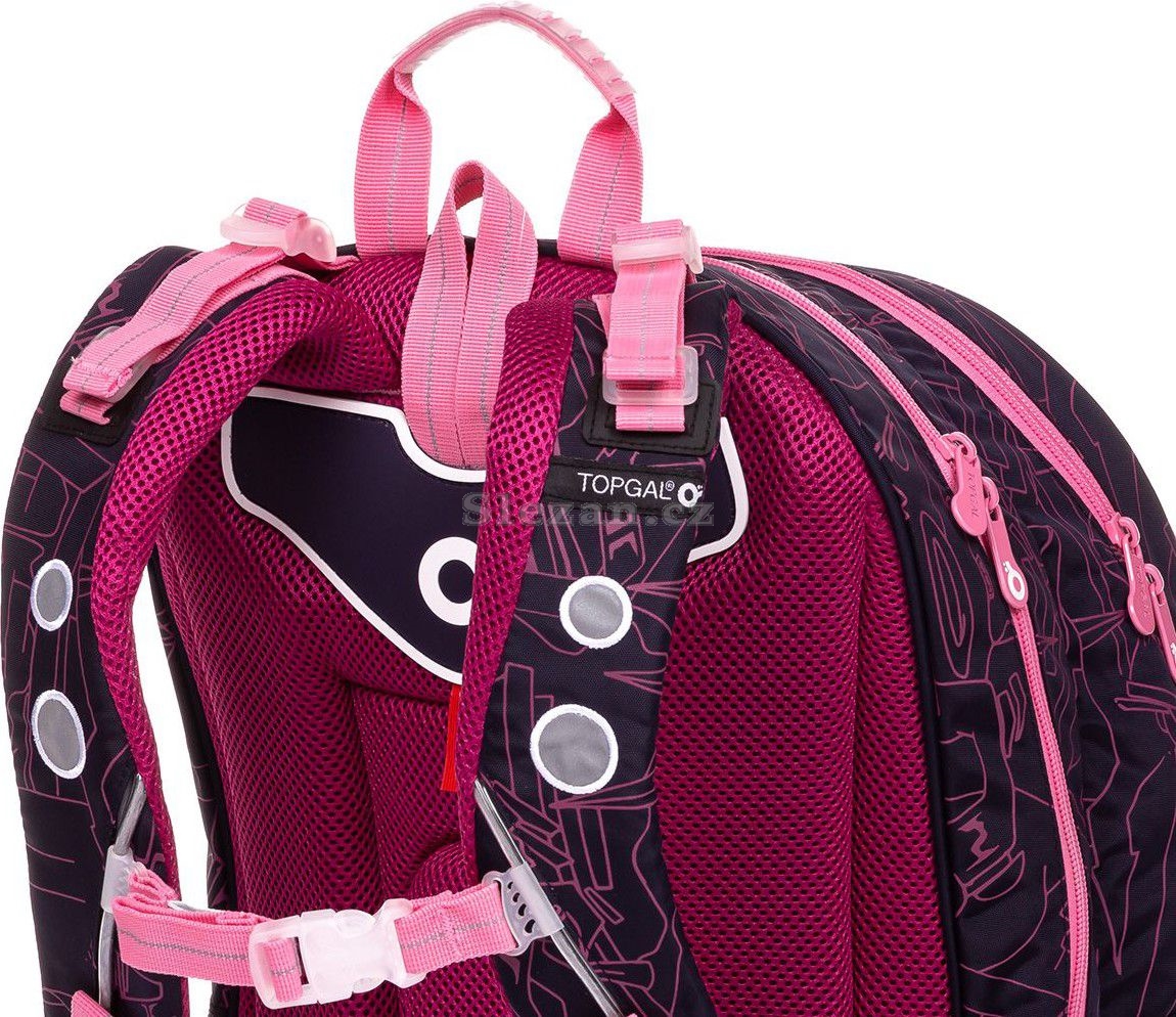 Navíc: reflexní prvky umístěné na všech stranách batohu ucho na zavěšení na lavici a druhé na přenášení batohu v ruce dno z pevného a odolného materiálu TOPDURA plastové nožičky chránící dno zátěr proti dešti batoh prošel certifikací ITC Zlín na jedničku