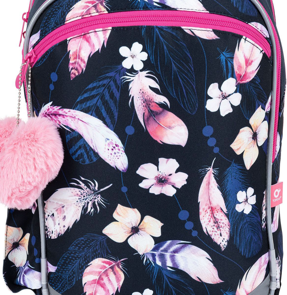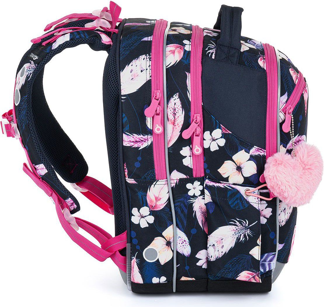Tříkomorový model COCO je oblíbeným střihem drobných slečen v první třídě, ale i školaček ve vyšších ročnících prvního stupně ZŠ. Batoh je lehký jako pírko a v kombinaci s květinkami udělá hodně parády.