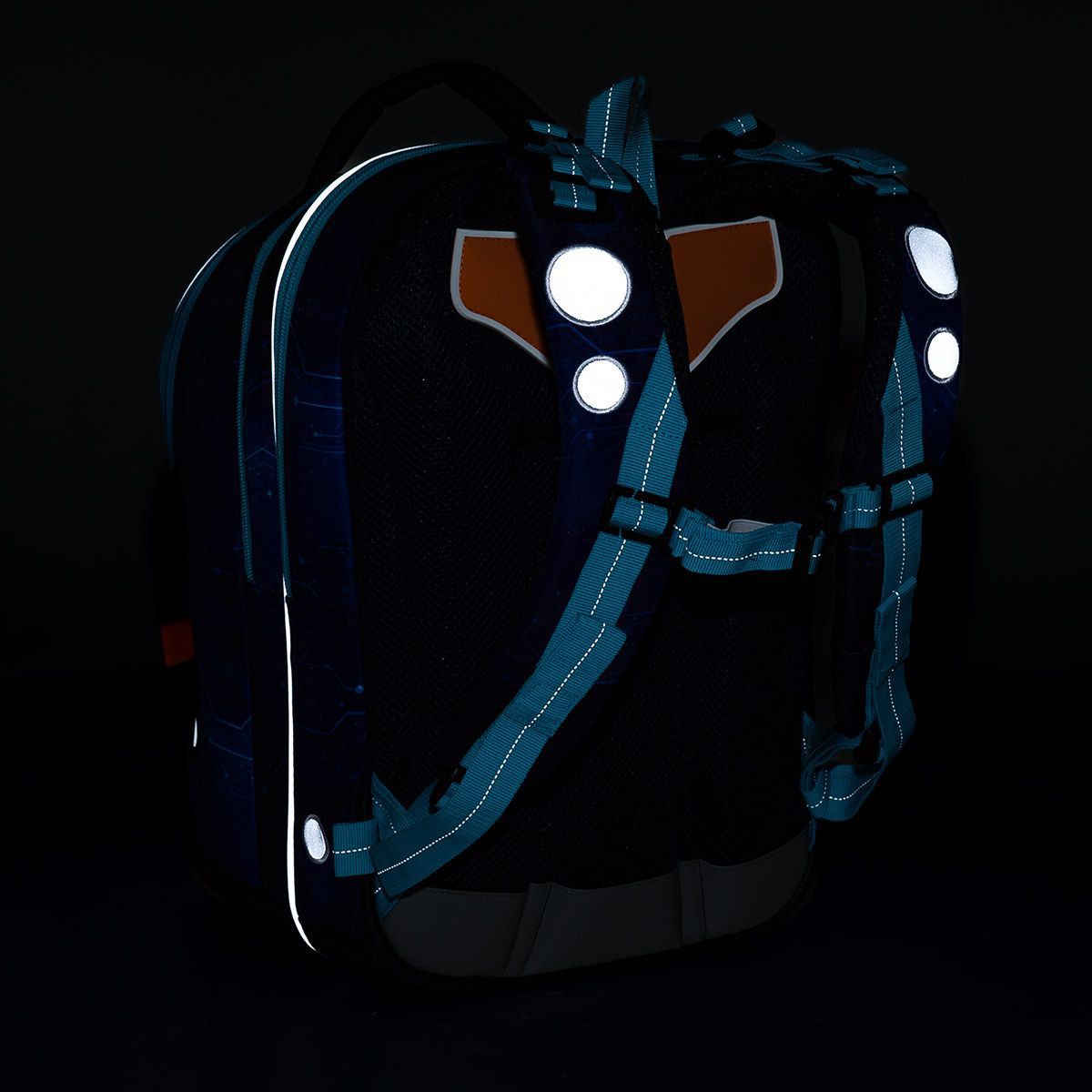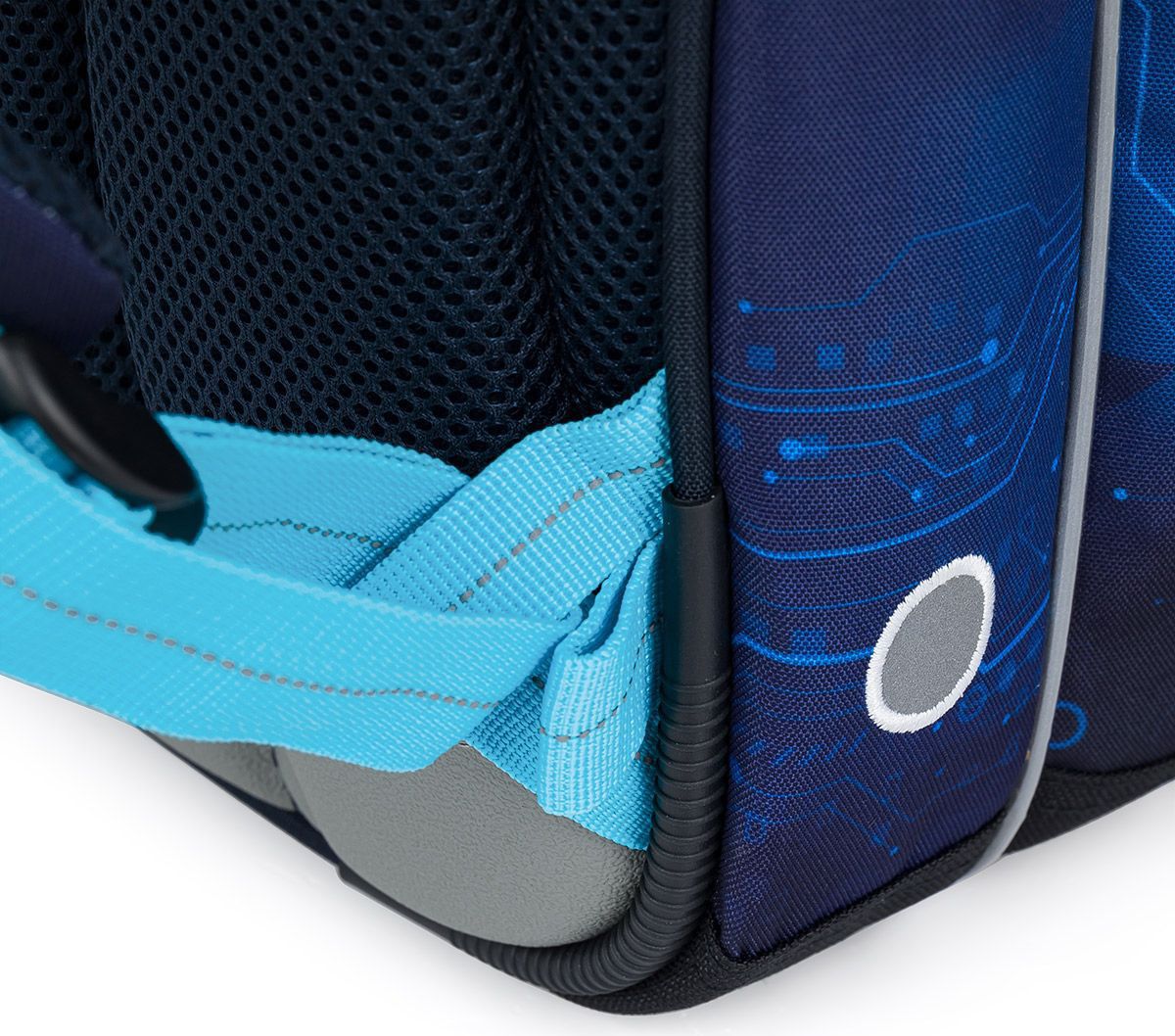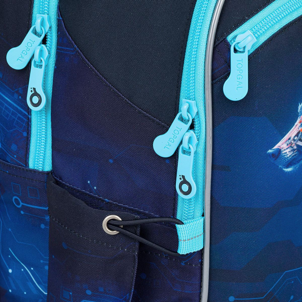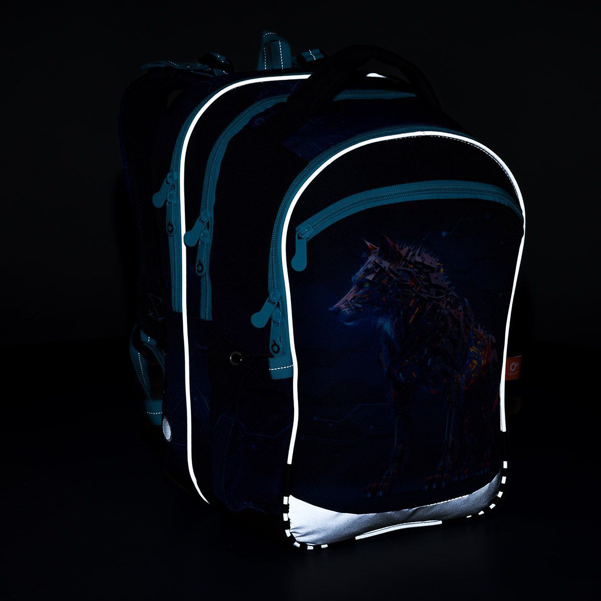 Zadní komora je nejširší, sem doporučujeme dát nejtěžší učebnice nebo desky na sešity. Přední komora je o něco užší a je v ní umístěna ještě malá síťová kapsa na zip a jmenovka.