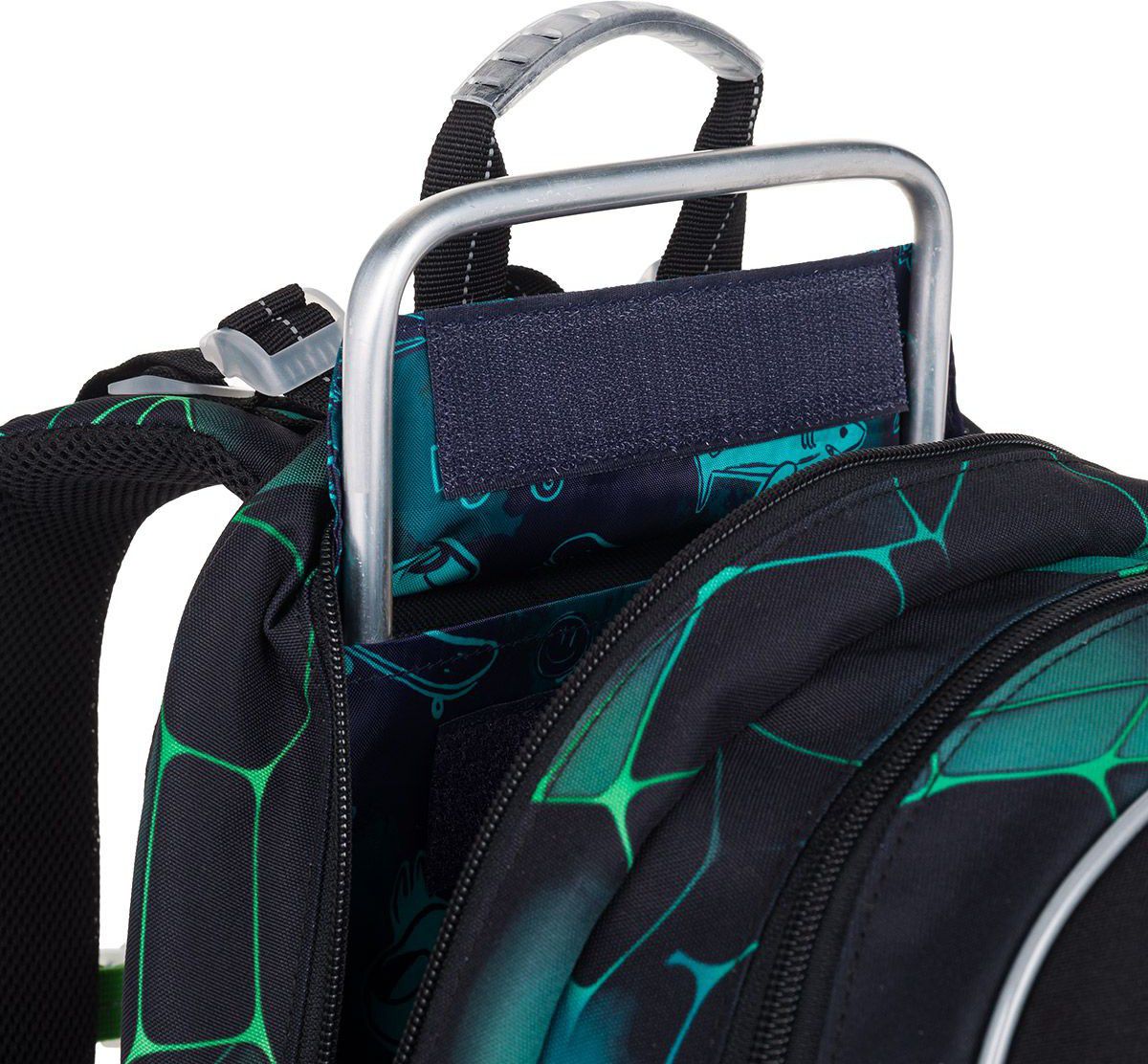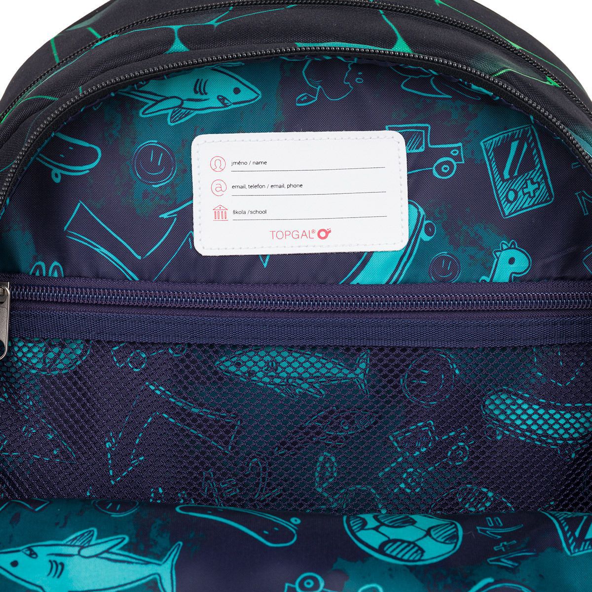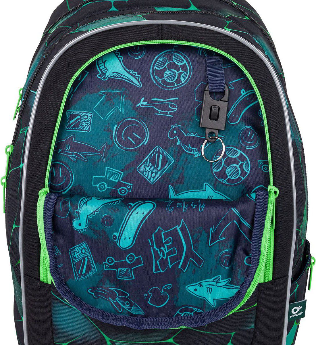 Batoh má dvě hlavní objemné komory. Do zadní komory doporučujeme dát nejtěžší učivo a směrem dopředu odlehčovat. V přední komoře je umístěna síťová kapsa na zip a jmenovka. Do hluboké kapsy na čele batohu se pohodlně vejde krabička na svačinku, nebo penálPENN 25019 ve stejném designu. Záda batohu jsou pevná, polstrovaná a anatomicky tvarovaná s hliníkovou výztuhou.