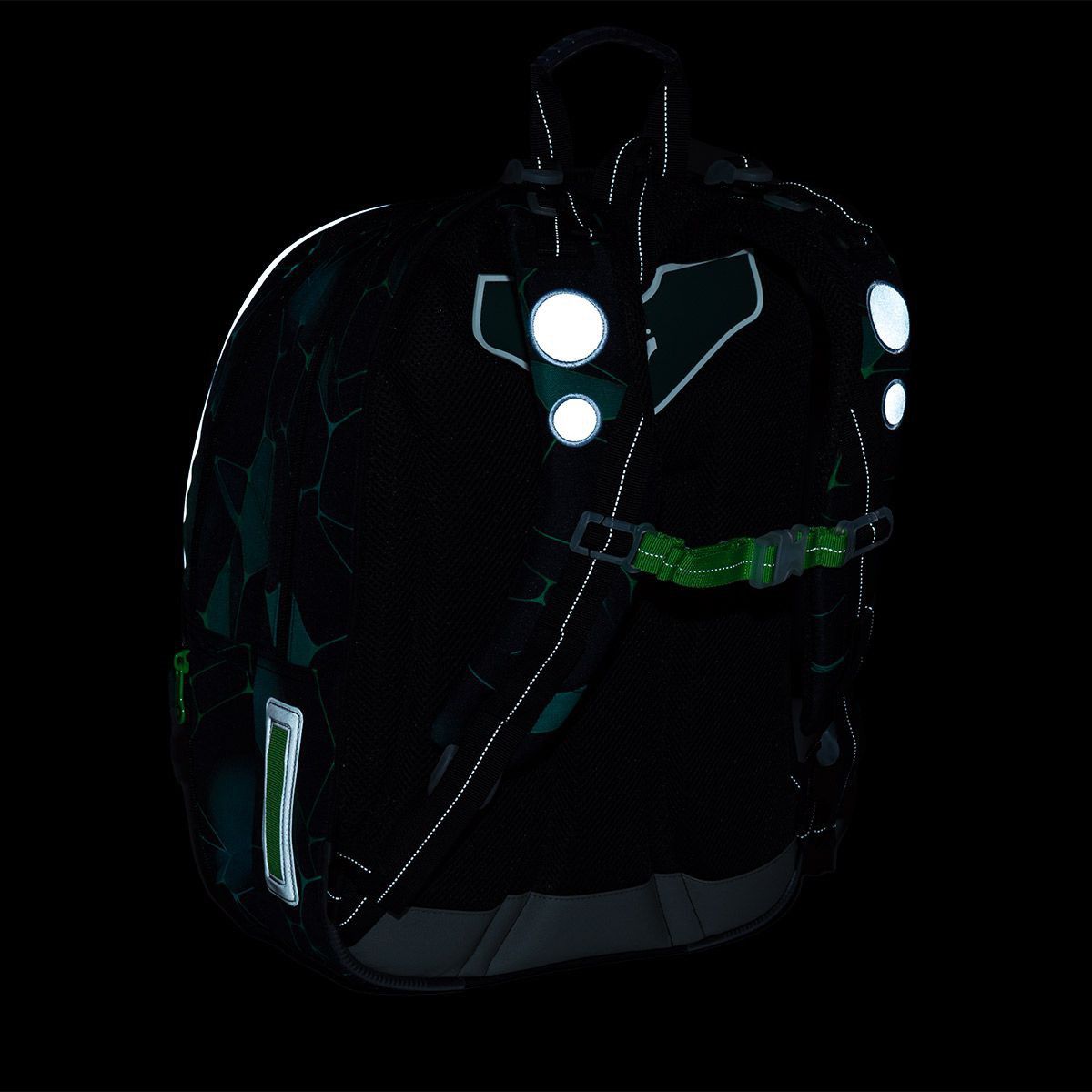 - reflexní prvky: na čele a bocích batohu, na ramenních popruzích