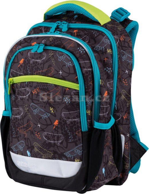 Kvalitní, ergonomicky tvarovaný odlehčený školní batoh je vybaven reflexními prvky a anatomicky tvarovanými zády s pevnou konstrukcí.