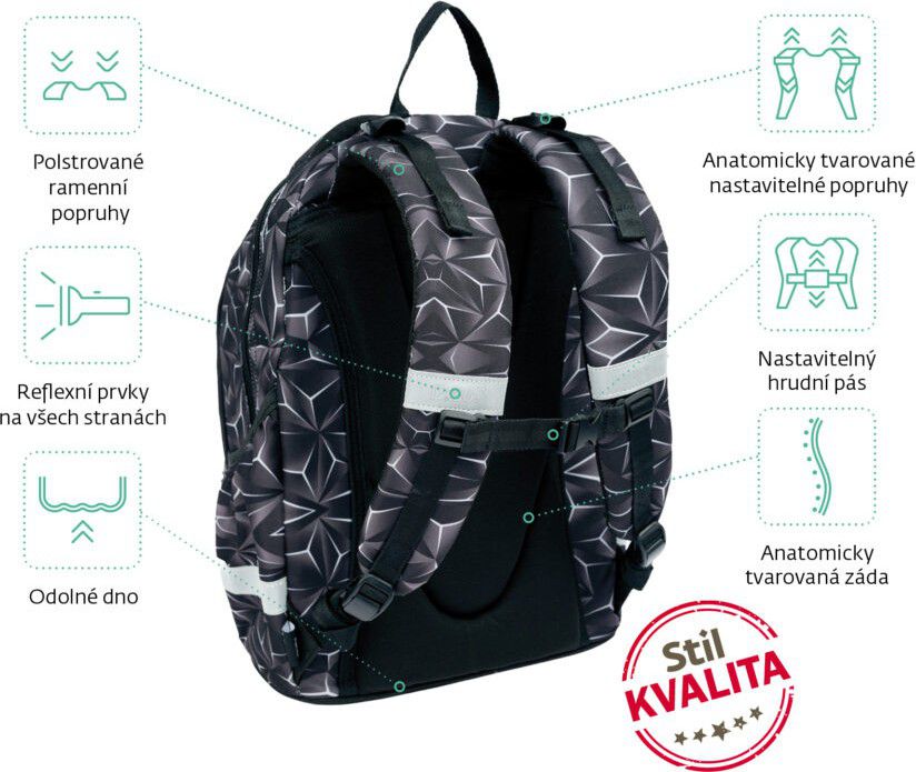 - BEZPEČNOST – reflexní prvky na všech stranách batohu pro lepší viditelnost a bezpečnost za každých okolností.