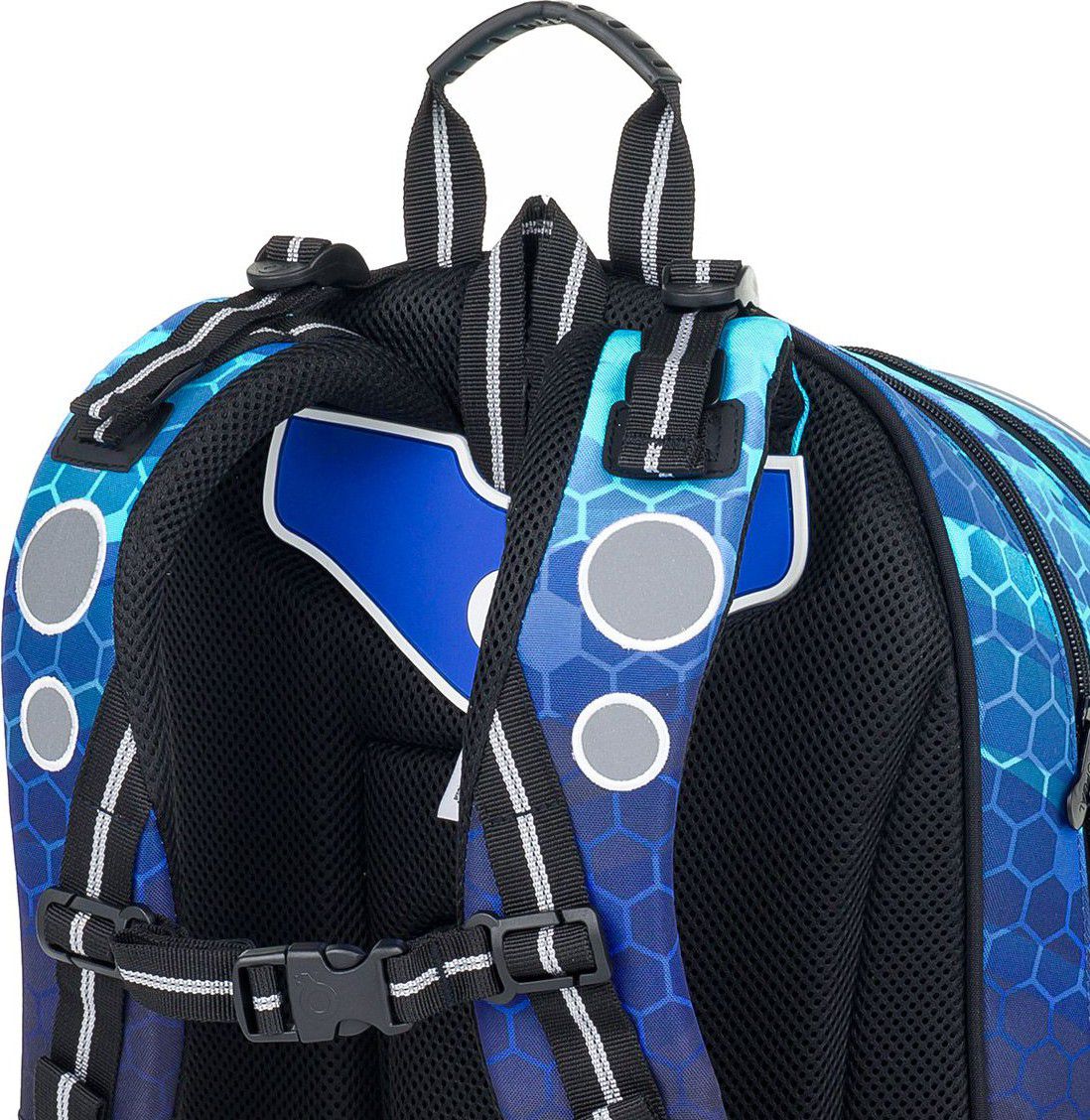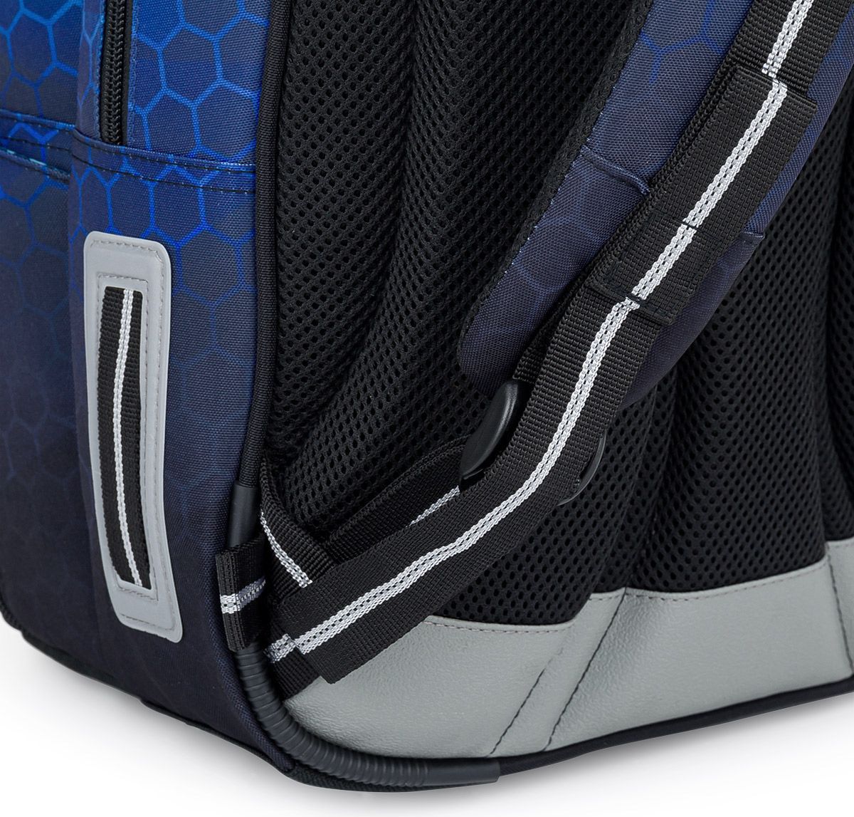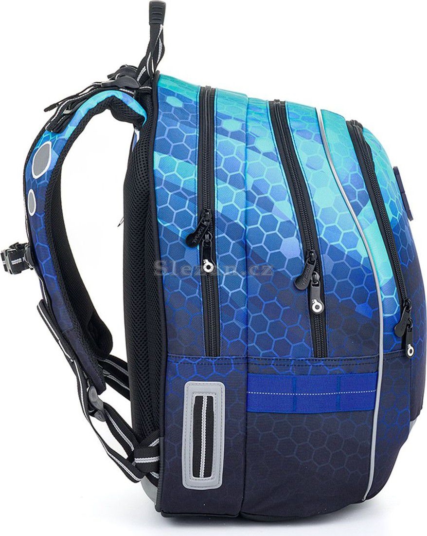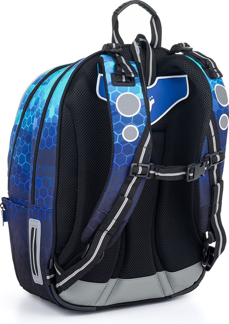 Batoh má dvě hlavní objemné komory. Zadní komora batohu je užší než přední, radíme do ní dát nejtěžší učivo a směrem dopředu odlehčovat. V přední komoře je umístěna síťová kapsa na zip a jmenovka.