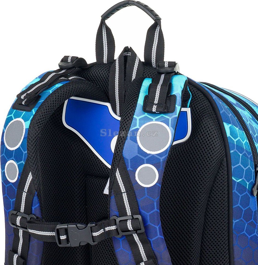 Do hluboké kapsy na čele batohu se krásně vejde krabička na svačinu nebo penál PENN 24017 ve stejném designu. Záda batohu jsou pevná, polstrovaná a anatomicky tvarovaná s hliníkovou výztuhou.