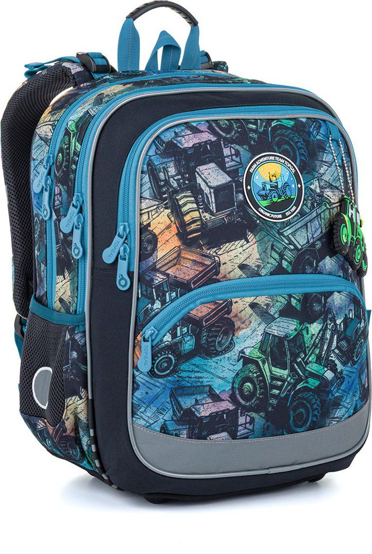 Školní batoh BAZI 26018 je vhodný pro děti od 115 cm a ideální pro období od 1. do 3. třídy. Barevný motiv stavebních strojů zaujme malé školáky a promění každý školní den v nové dobrodružství.