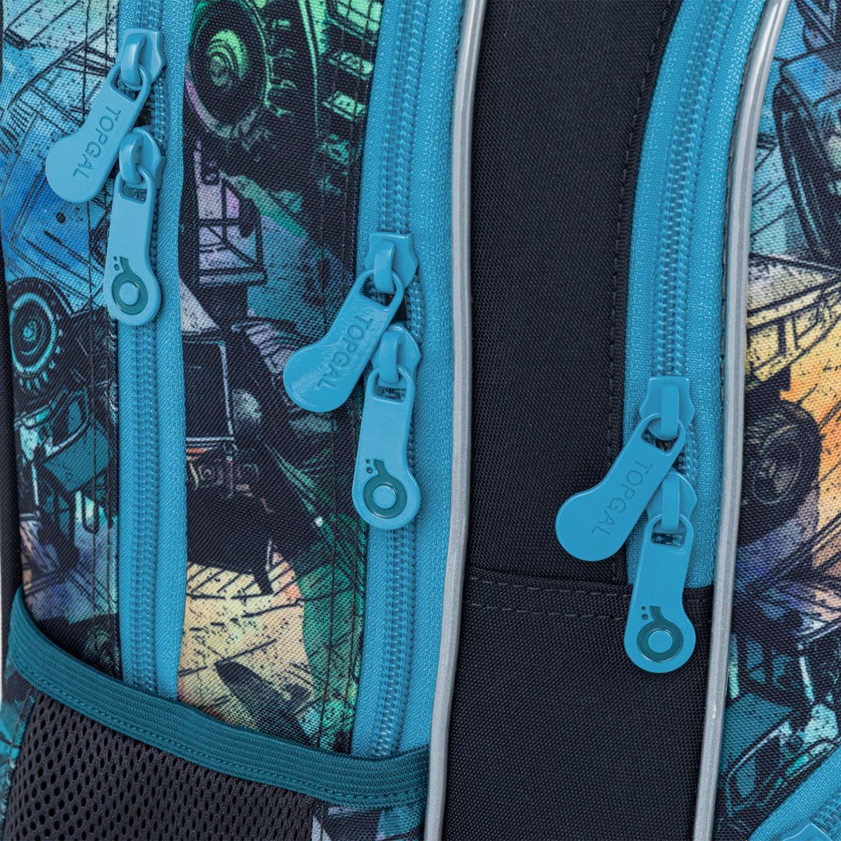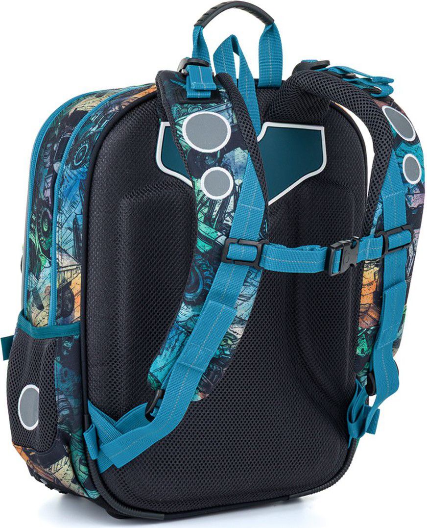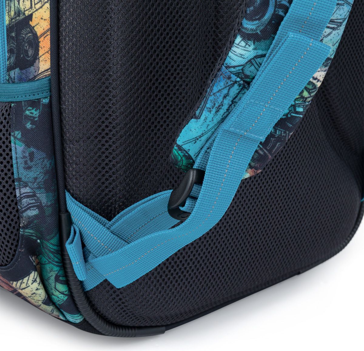 Spodní část batohu je vyrobená z odolného materiálu TOPDURA, který chrání batoh před oděrem a pomáhá mu držet tvar i při každodenním školním používání.