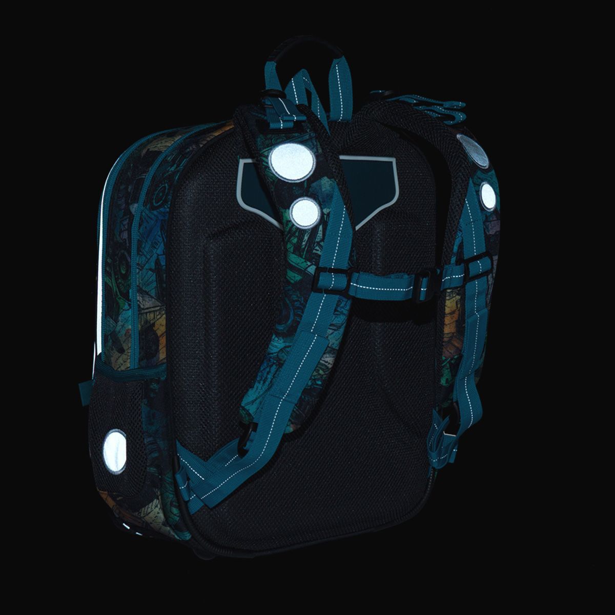 Do boční kapsy se pohodlně vejde lahev ZIVA o objemu 0,5 litru. Batoh je vybaven reflexními prvky na čele, bocích i ramenních popruzích, které zvyšují bezpečnost dítěte na cestě do školy.