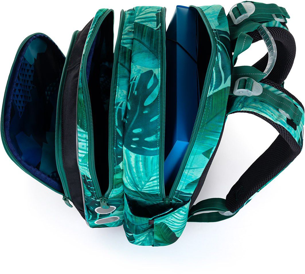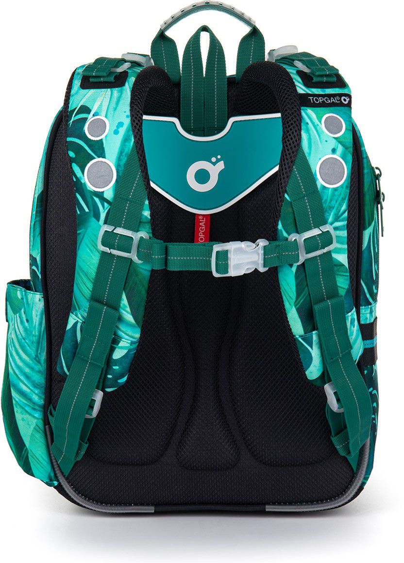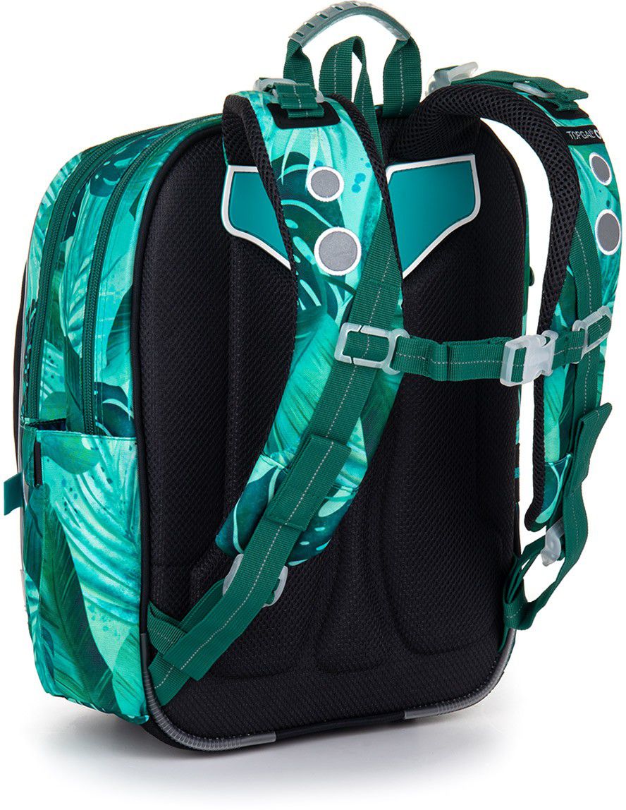 Svým objemem ale vydrží klidně až do třetí třídy… Zádový systém batohu je díky anatomicky tvarované lisované pěně ultralehký. I na zádech malého badatele bude batůžek sedět jako ulitý. Ramenní popruhy jsou polstrované, anatomicky tvarované a hlavně – dají se utáhnout v horní části k zádům i ve spodní části na délku. Výškově nastavitelný hrudní pásek zajistí, že popruhy nebudou sjíždět ani z drobných zad.