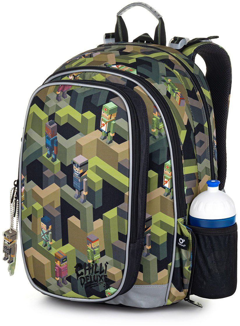 Dvě komory, organizér a hluboká přední kapsa - parádička s oblíbeným motivem pro kluky na prvním stupni ZŠ! testováno v ITC Zlín dvě komory a hluboká přední kapsa přední komora členěná praktickým organizérem pevná anatomicky tvarovaná záda s výztuhou stylový potisk a přívěsky na přední kapse Pozor! Batoh pro všechny gamery na prvním stupni ZŠ navíc se super přívěsky! Střih MIRA je velmi objemný, doporučujeme jej cca od 125 cm výšky a bude sloužit nejméně do páté třídy základních škol. Batoh MIRA má dvě objemné komory.
