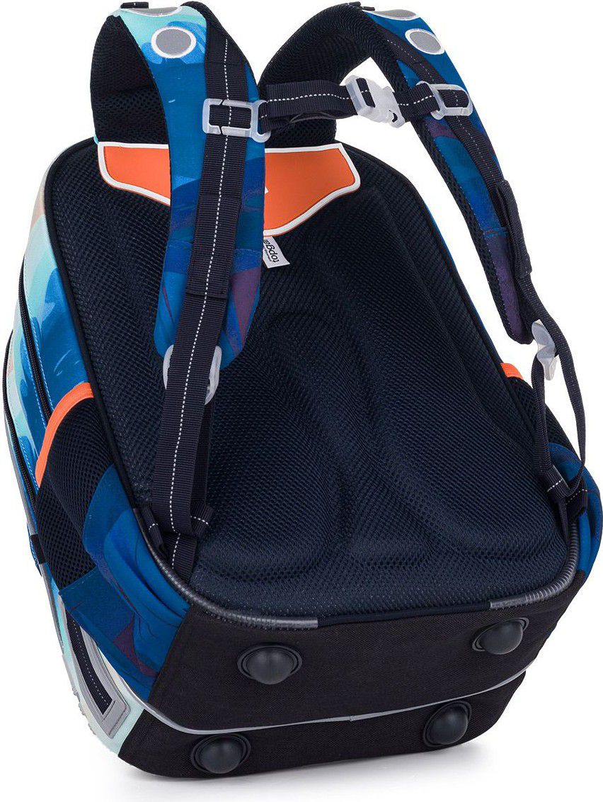 Model ELLY neváží ani kilogram, proto je ideální pro kluky s výškou od 115 cm od první, až do čtvrté třídy ZŠ. V tomto případě dominuje modrá barva, která krásně ladí s oranžovými detaily.