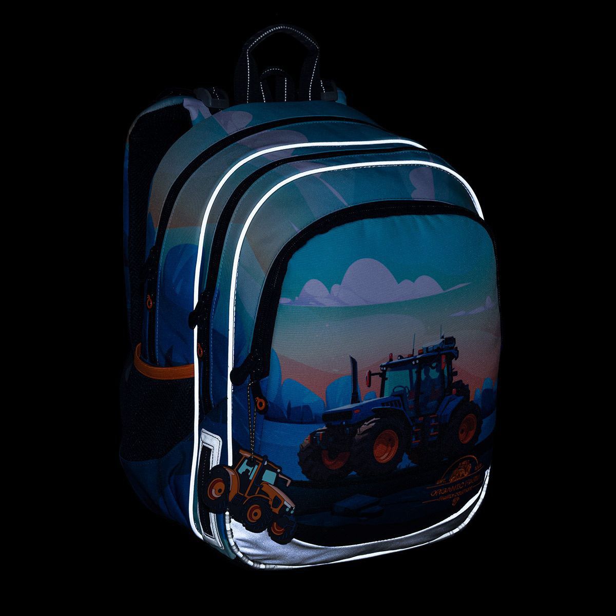 - reflexní prvky: na čele a bocích batohu, na ramenních popruzích