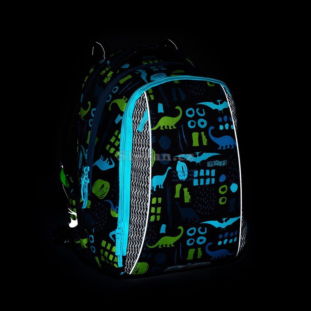 Na školním batohu VEGA je velké množství reflexního materiálu pro maximální zvýšení viditelnosti dítěte v silniční dopravě. Zejména v přední části školního batohu, po stranách, ale i na ramenních popruzích. Nový typ odlehčených taháčku s pryžovým poutkem zajistí pohodlné ovládání zipů.