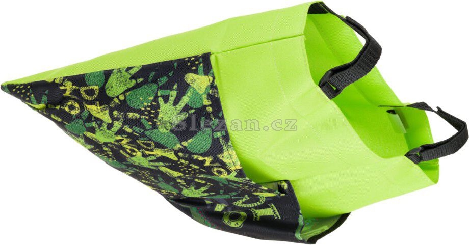 Pomocí suchého zipu se připevní ke školní lavici, k uložení slouží jedna velká a dvě menší kapsy.