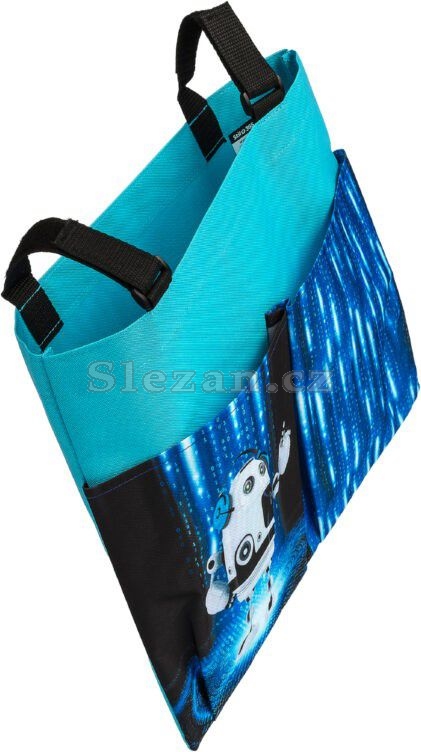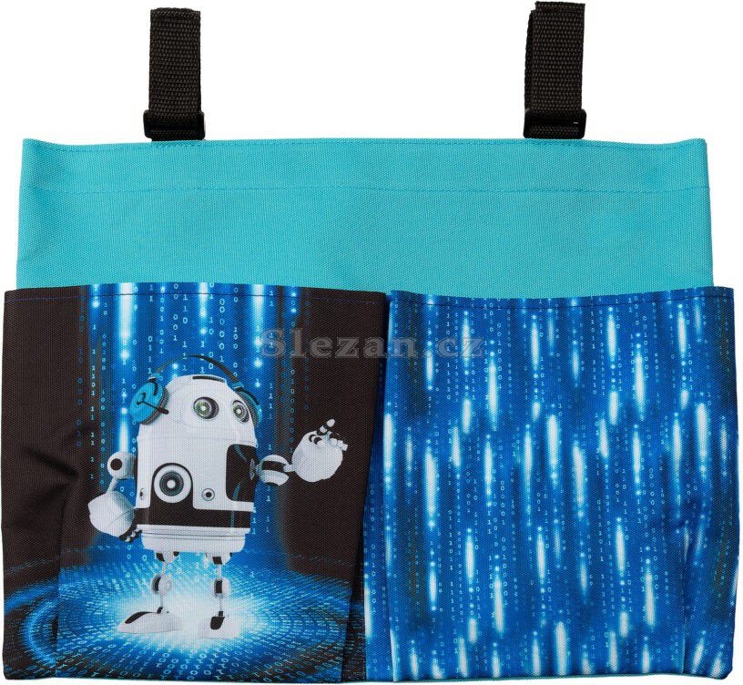 Pomocí suchého zipu se připevní ke školní lavici, k uložení slouží jedna velká a dvě menší kapsy.