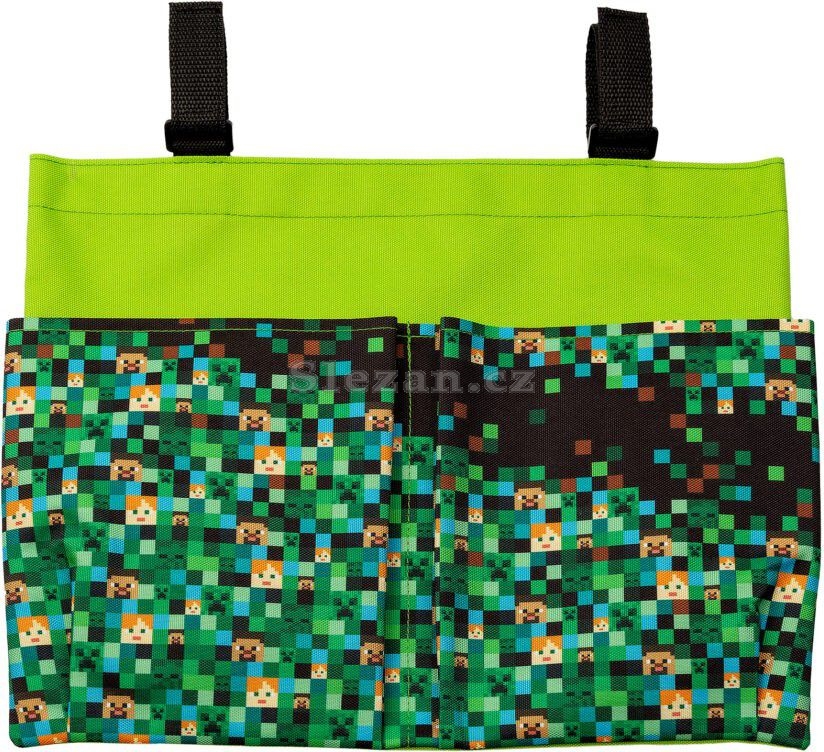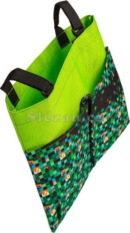 Pomocí suchého zipu se připevní ke školní lavici, k uložení slouží jedna velká a dvě menší kapsy.