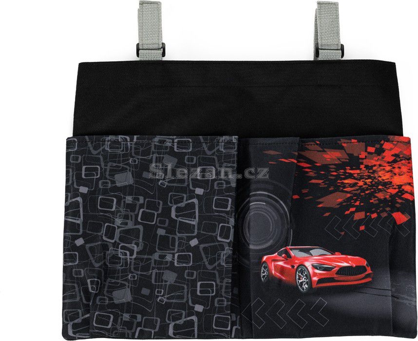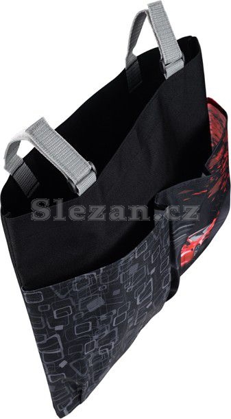Pomocí suchého zipu se připevní ke školní lavici, k uložení slouží jedna velká a dvě menší kapsy.