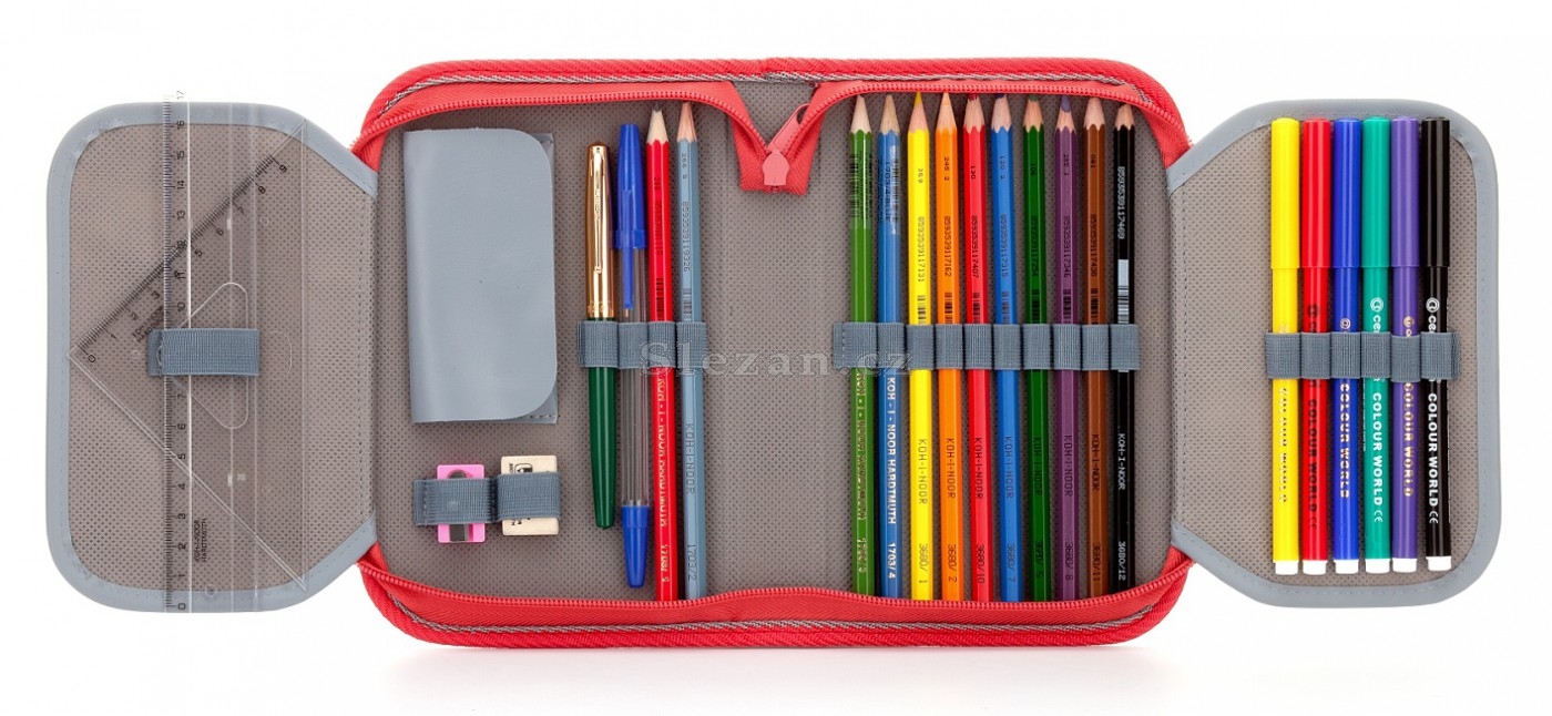 Můžete si vybrat mezi penálem neplněným nebo plněným psacími potřebami. Psací potřeby jsou od renomovaných značek Koh-i-noor, Centropen, Concord.