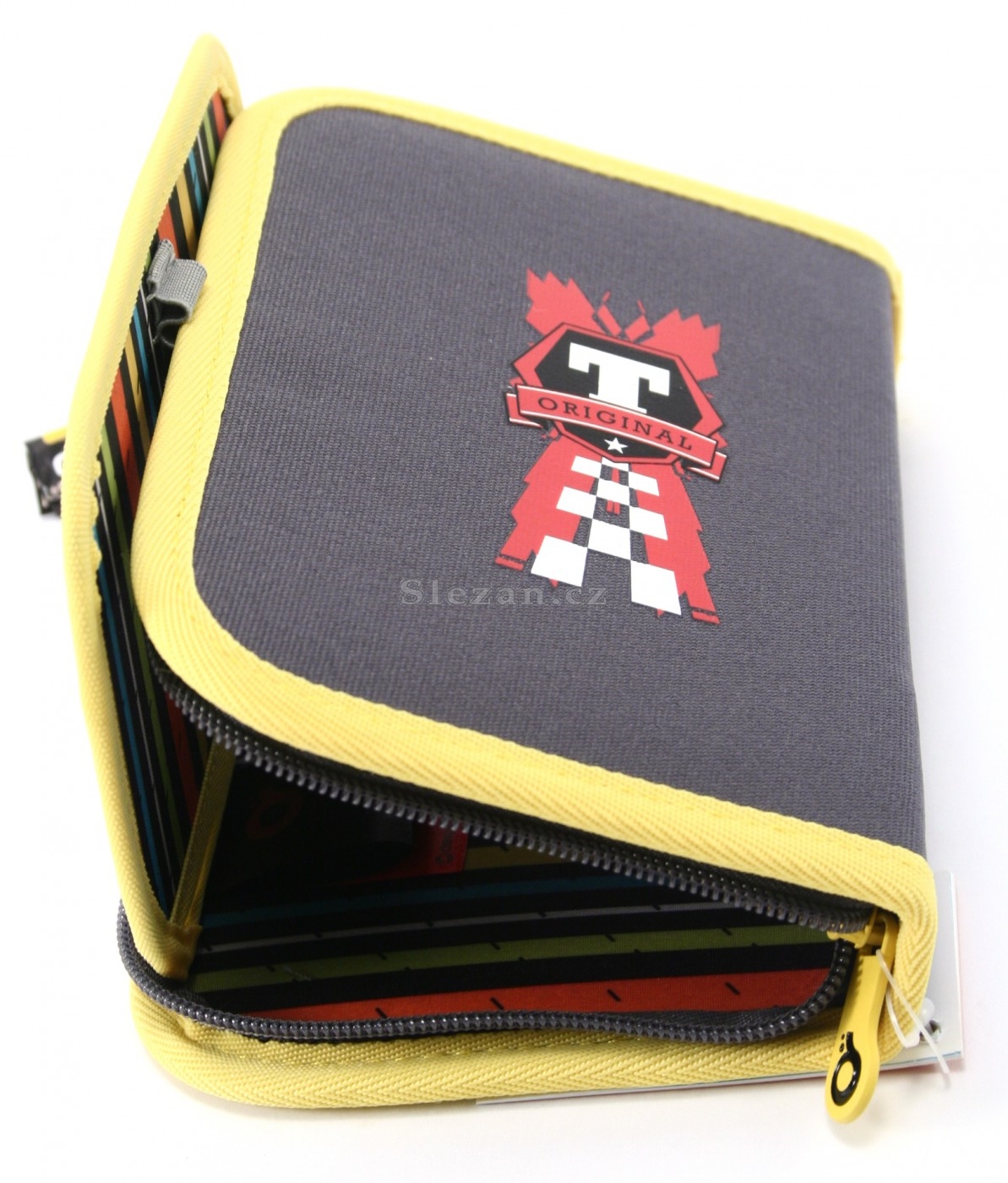 Jednopatrový školní penál, polstrovaný pro ochranu psacích potřeb, uzavíratelný pomocí kvalitních zipů s velkými taháčky pro snadnou manipulaci.