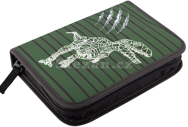 penál s jednou klopou pro ukládání per, tužek, pastelek, pravítka, úhloměru, gumy a dalších školních potřeb