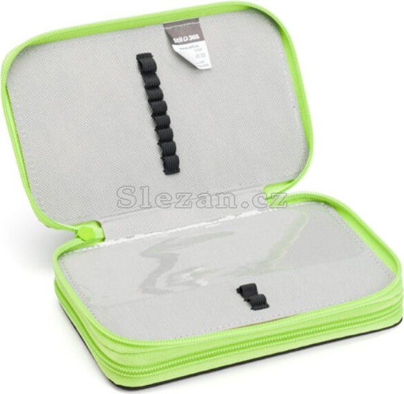 Ve druhém patře penálu je umístěna průhledná kapsička na rozvrh a tajné dokumenty a 9 pevných gumiček na psací potřeby různých velikostí.