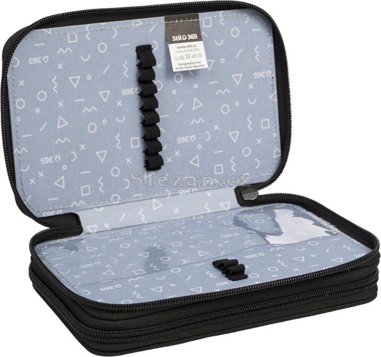 Dvoupatrové penály obsahují v prvním patře 8 gumiček na pastelky a tužky, dále gumičky na ořezávátko, gumu či nůžky a nyní nově síťovanou kapsičku s pružným lemem pro uložení drobností.