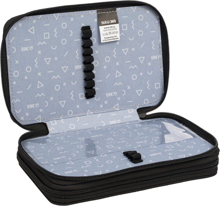 Dvoupatrové penály obsahují v prvním patře 8 gumiček na pastelky a tužky, dále gumičky na ořezávátko, gumu či nůžky a nyní nově síťovanou kapsičku s pružným lemem pro uložení drobností.