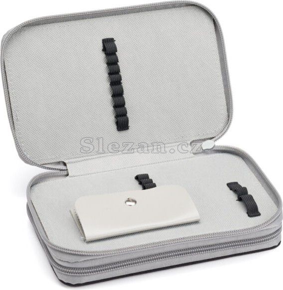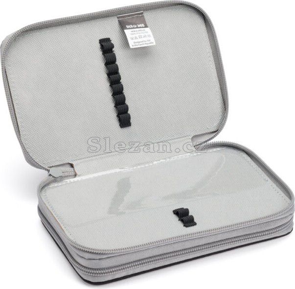 Ve druhém patře penálu je umístěna průhledná kapsička na rozvrh a tajné dokumenty a 9 pevných gumiček na psací potřeby různých velikostí.