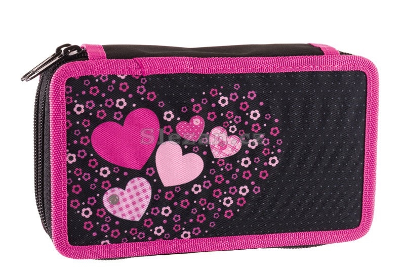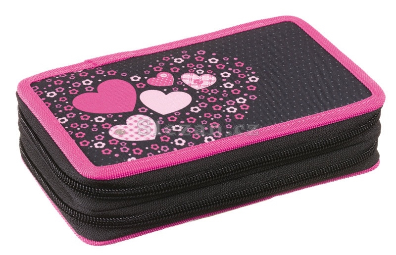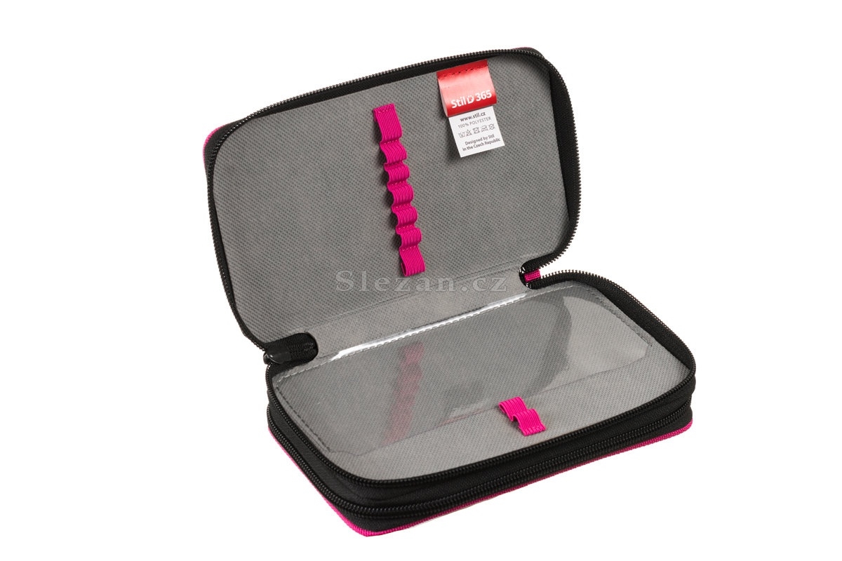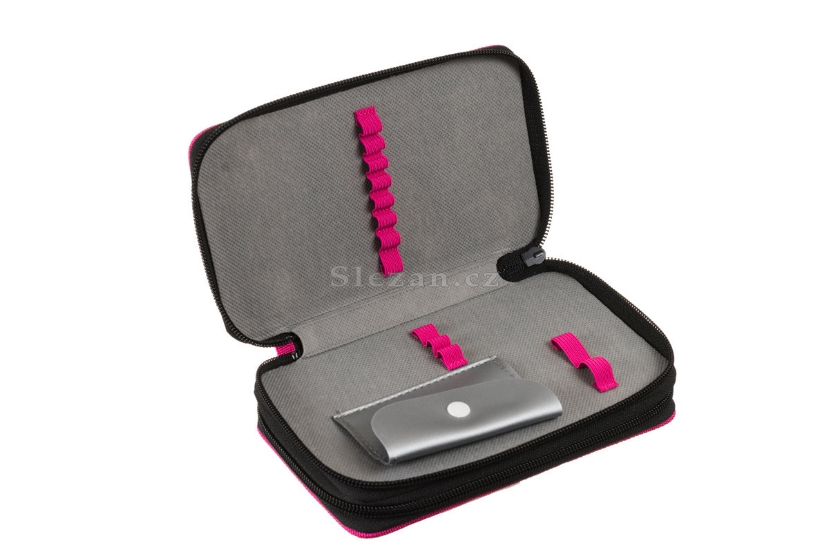 Dvoupatrové penály obsahují v prvním patře 8 gumiček na pastelky, 2 gumičky na tužky a jednu větší na pero, dále gumičky na ořezávátko a gumu a kapsičku na drobnosti, uzavíratelnou na patent.