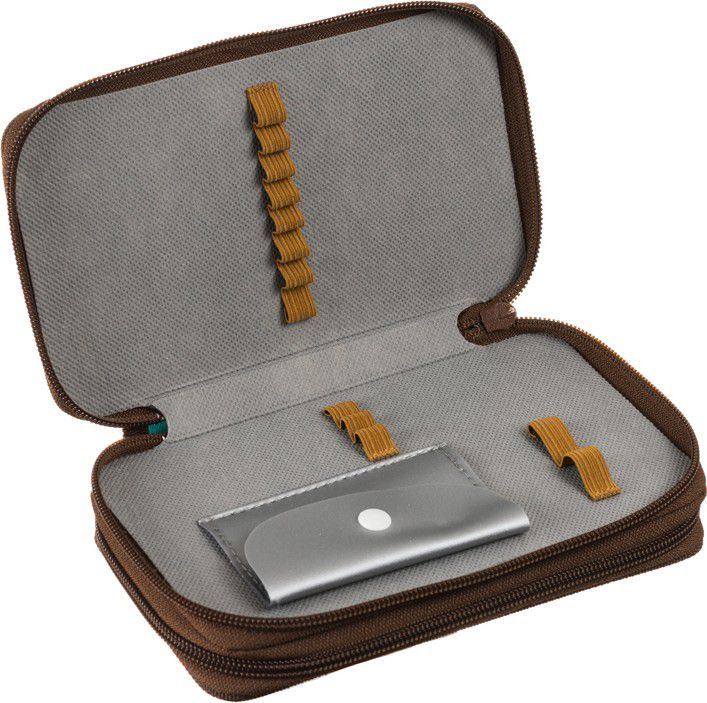 ve druhém patře penálu je umístěna průhledná kapsička na rozvrh a tajné dokumenty a 9 pevných gumiček na psací potřeby různých velikostí