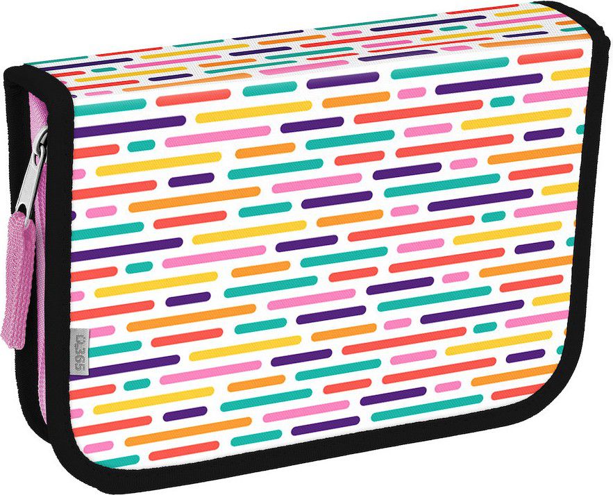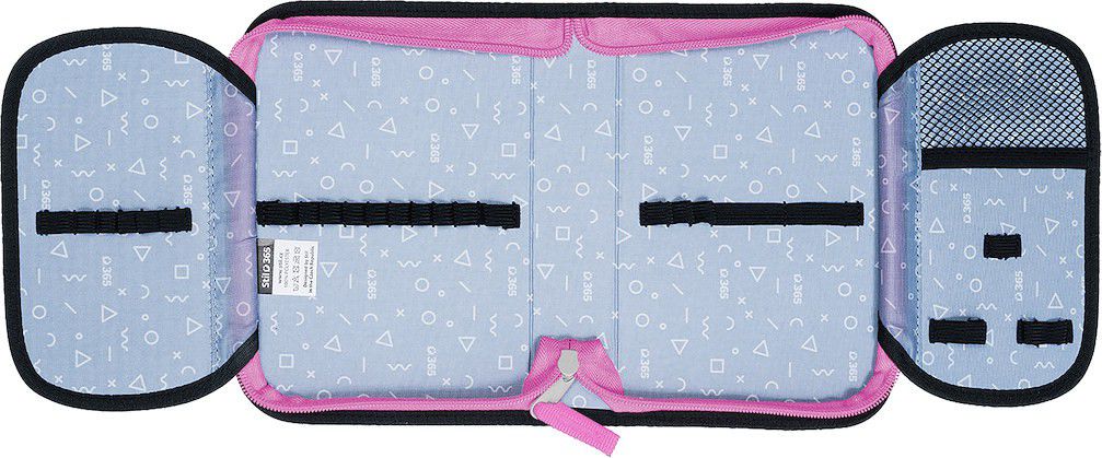 Přesně 24 pevných gumiček různých velikostí slouží k pohodlnému uložení pastelek, psacího pera, tužek, pravítka, ořezávátka a gumy.