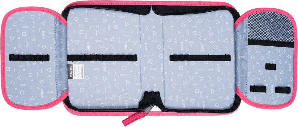 Přesně 24 pevných gumiček různých velikostí slouží k pohodlnému uložení pastelek, psacího pera, tužek, pravítka, ořezávátka a gumy.