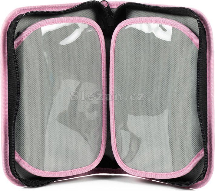 Jednopatrové penály mají velkou kapacitu k umístění psacích potřeb. 23 pevných gumiček různých velikostí k pohodlnému uložení větších pastelek nebo psacího pera, pravítka, ořezávátka a gumy. Vnitřní dvě chlopně mají na vnější straně průhlednou kapsičku na rozvrh či jiné malé dokumenty. Na vnitřní straně je kapsička na drobnosti, uzavíratelná patentem. Novinka: zipy jednopatrových penálů jsme letos vylepšili šňůrkou na jezdci zipu, který usnadní dětským prstům otevírání a zavírání penálu. Dokonale barevně sladěný design s aktovkou či batohem je samozřejmostí.