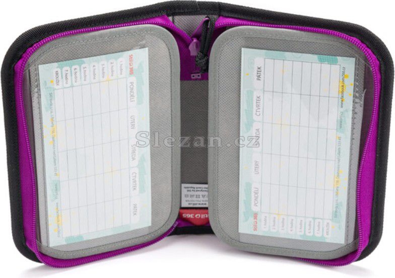 Vnitřní dvě chlopně mají na vnější straně průhlednou kapsičku na rozvrh či jiné malé dokumenty.