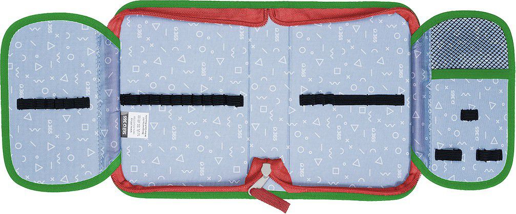Chlopně mají na vnější straně průhlednou kapsičku na rozvrh či jiné malé dokumenty, na vnitřní straně je pak nová síťovaná kapsička pro uložení drobností.