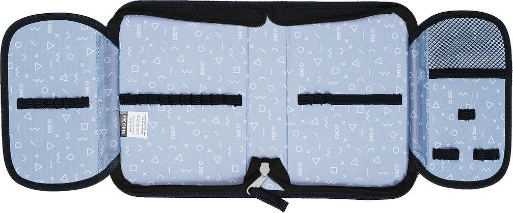 Přesně 24 pevných gumiček různých velikostí slouží k pohodlnému uložení pastelek, psacího pera, tužek, pravítka, ořezávátka a gumy.