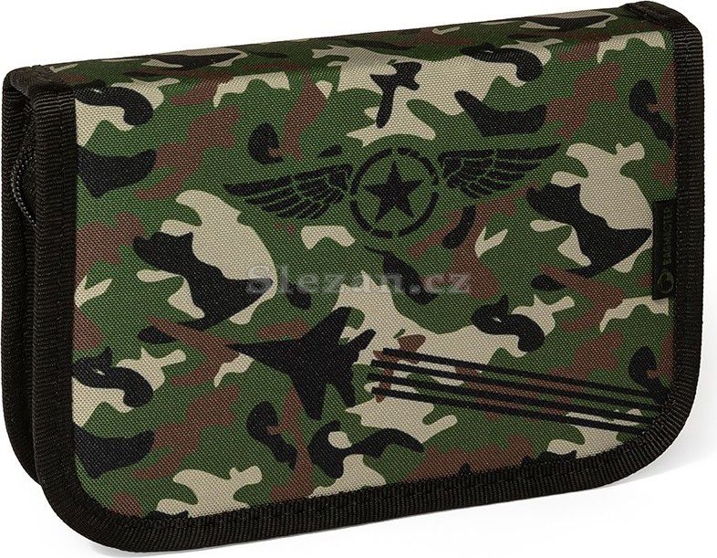 Vojenský penál se stíhačkami pro malé raubíře, kteří se chystají do školy