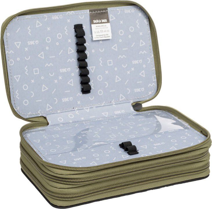 Ve druhém patře je umístěna průhledná kapsička na rozvrh a 10 pevných gumiček na psací potřeby různých velikostí.